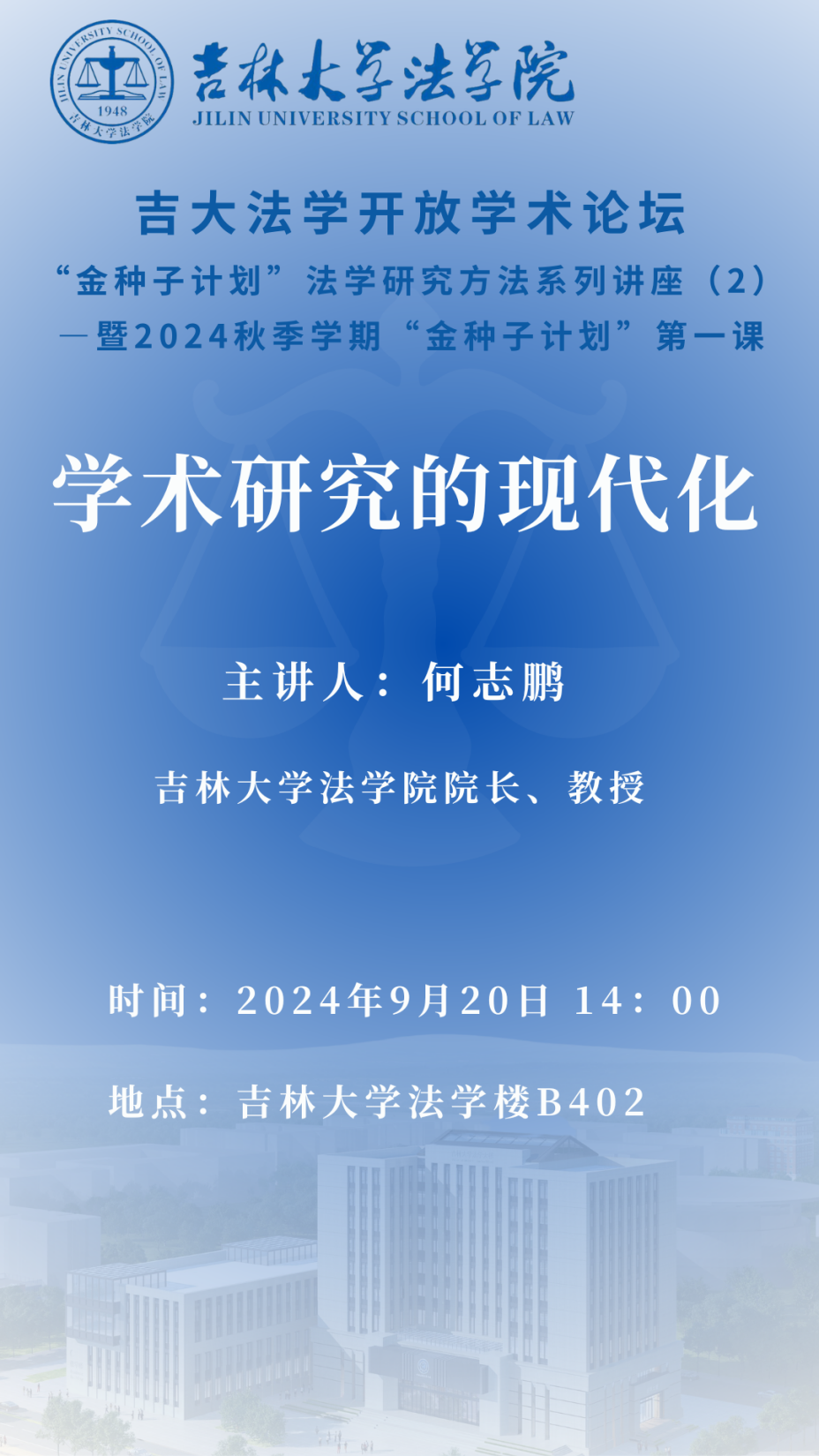 自2021年9月伟德国际bevictor1946启动“金种子计划”以来,为培养具有扎实理论功底、自主创新意识和广阔前沿视野的法学人才,“金种子计划”已开展法学与交叉学科系列讲座、法学研究方法系列讲座和法学学术论文写作系列讲座。本期将由伟德国际bevictor1946经理何志鹏教授为成员们作《学术研究的现代化》专题讲座。