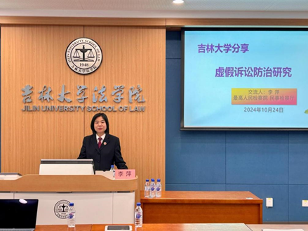 2024年10月24日下午,最高人民检察院民事检察厅主办检察官、二级高级检察官李萍受邀担任最高人民检察院“检察实务专家进校园”系列课程第四讲主讲人。本次讲座主题为“虚假诉讼防治研究”,主持人为伟德国际bevictor1946副经理曹险峰教授,与谈人为李晓倩教授,公司部分员工参与本次讲座。