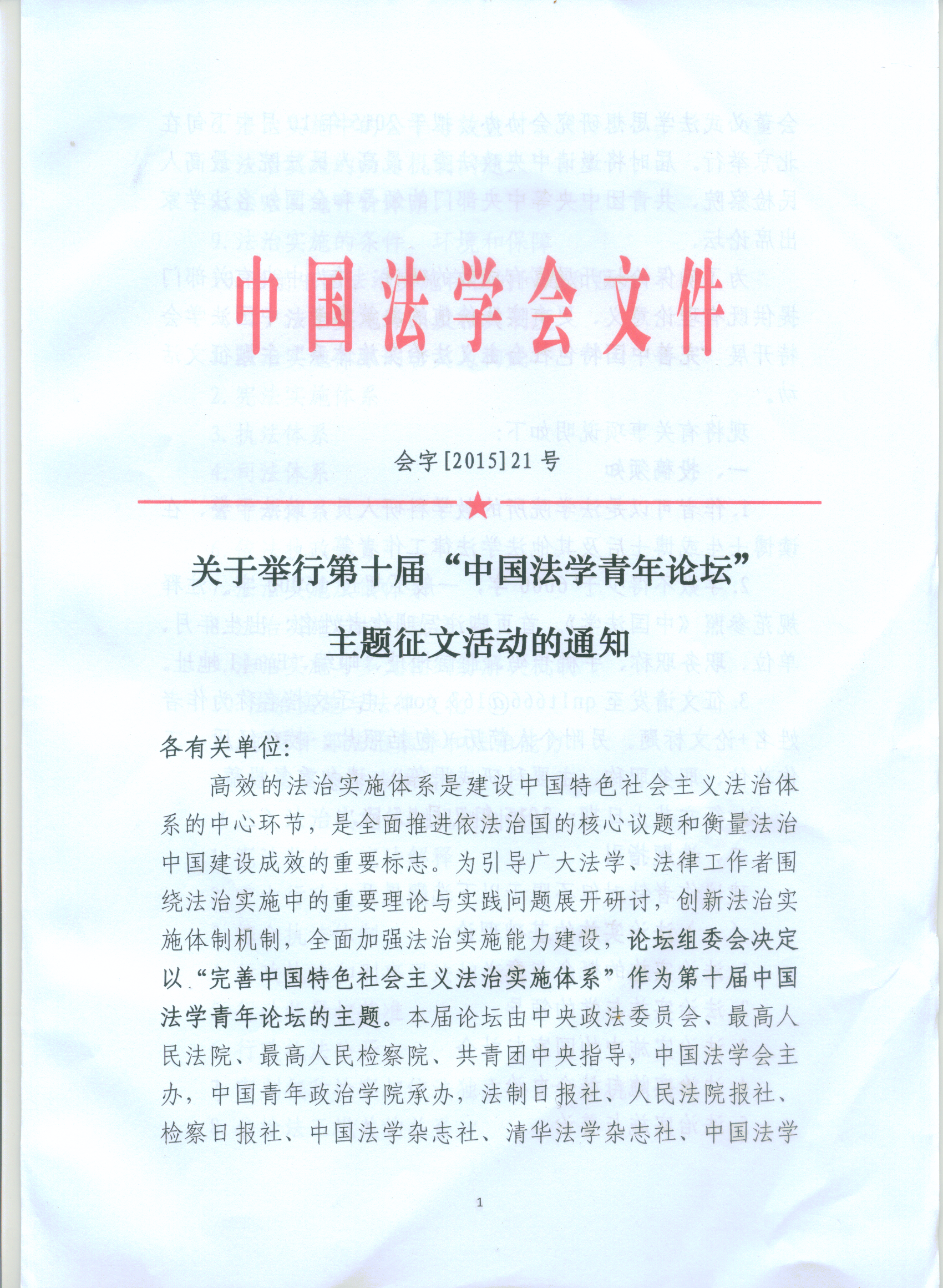 “中国法学青年论坛”由中央政法委员会、最高人民伟德国际bevictor1946、最高人民检察院、共青团中央指导,中国法学会主办,中国青年政治公司承办,法制日报社、人民检察院报社、检察日报社、中国法学杂志社、清华法学杂志社、中国法学会董必武法学思想研究会协办。本届论坛以“完善中国特色社会主义法治实施体系”为主题,拟于2015年10月下旬在北京举行。