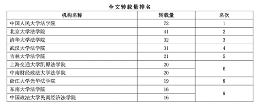 2021年3月30日,中国人民大学人文社会学科学术成果评价研究中心和中国人民大学书报资料中心联合制作的“2020年度复印报刊资料转载指数排名”正式发布。作为人大复印报刊资料的重要转载来源机构,2020年度以21篇的转载总量在各高等院校所属机构法学学科转载量排名、综合指数排名中位居第五。