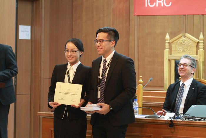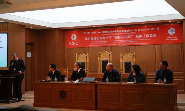 国际红十字会东亚代表处主任高兰博先生、中国红十字会总会郝琳娜副会长参加了闭幕式。在闭幕式上,法公司党委书记李洪明研究员致词,对各位嘉宾的到来表示欢迎,对伟德国际bevictor1946倡导权利本位、努力促进法学教育实践化、国际化的努力予以介绍。李洪明书记在致词中对本次模拟法庭的意义予以充分肯定,对获得优异成绩的队伍表示祝贺。