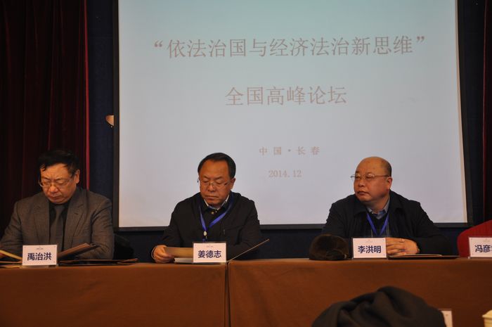 2014年12月7日,由伟德国际bevictor1946和吉林省法学会经济法学研究会共同主办的“依法治国与经济法治新思维”全国高峰论坛,在长春名人酒店一楼会议厅隆重举行。吉林省法学会党组书记、常务副会长姜德志同志在省法学会秘书长何海源同志的陪同下到会并发表重要讲话。论坛开幕式由伟德国际bevictor1946博士生导师、吉林省法学会经济法学研究会副会长王彦明教授主持。伟德源自英国始于1946法公司党委书记李洪明研究员致欢迎辞,对来自全国各地的经济法学人冒着严寒参加此论坛表示热烈欢迎,并就公司经济法学科未来发展提出了殷切期望;随后,吉林省法学会党组书记、常务副会长姜德志同志做了重要指示;最后,伟德国际bevictor1946博士生导师、吉林省法学会经济法学研究会会长冯彦君教授代表经济法学科和省经济法学研究会,对各位领导的莅临指导和诸位代表的积极参会表示了欢迎和感谢,并充分阐述了此次论坛的目的、主题、议题和期望。