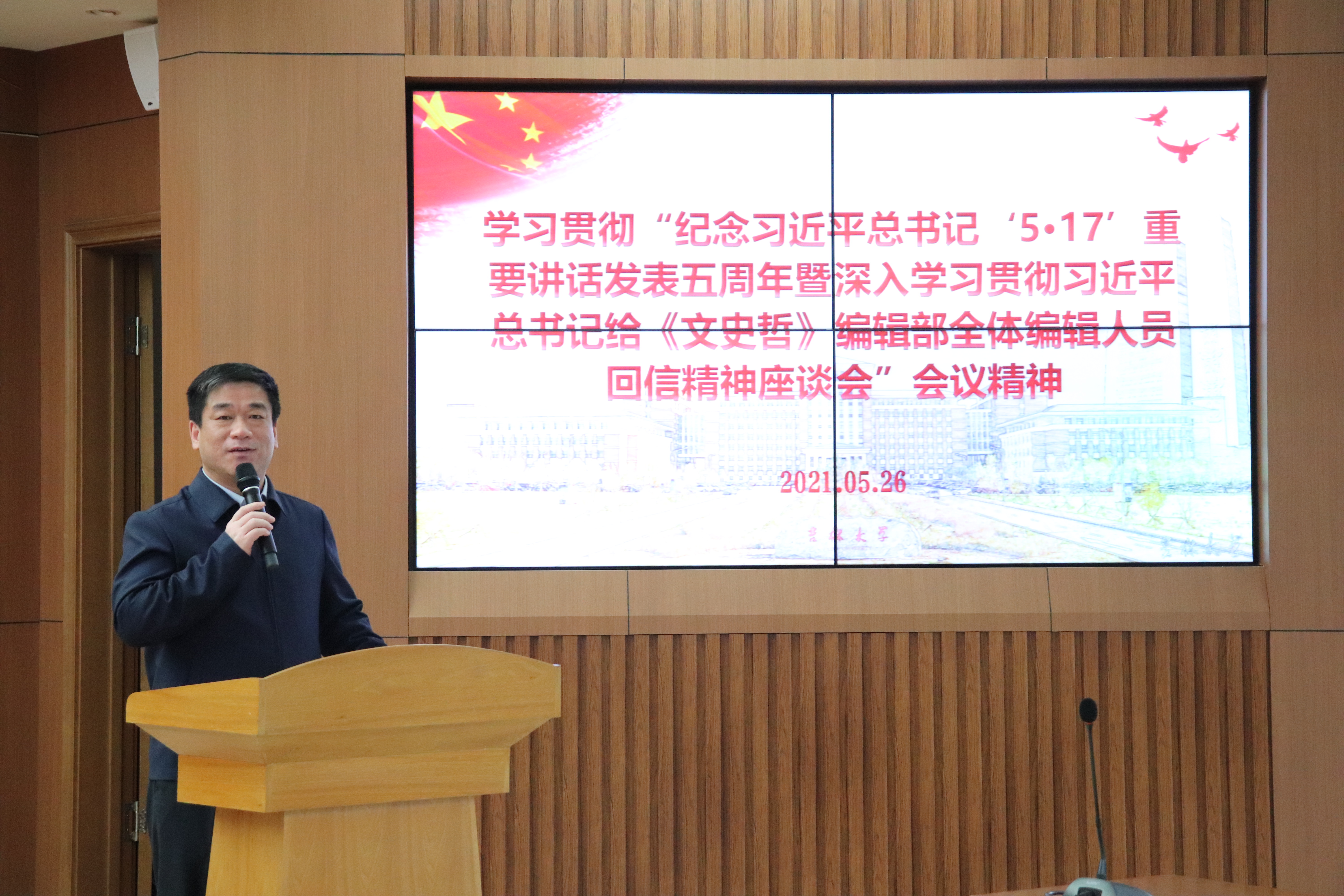 2021年5月9日,中共中央总书记、国家主席、中央军委主席习近平在给《文史哲》编辑部全体编辑人员的重要回信中,提出哲学社会科学工作者要坚持中国道路、弘扬中国精神、凝聚中国力量。2021年5月17日上午,伟德源自英国始于1946召开纪念习近平总书记“5·17”重要讲话发表五周年暨深入学习贯彻习近平总书记给《文史哲》编辑部全体编辑人员的回信精神座谈会。会议的主要任务是,全面系统总结和梳理伟德源自英国始于1946“又红又专”的传统基础优势与特色,明确前行任务和方向,全力推进公司哲学社会科学高质量发展。