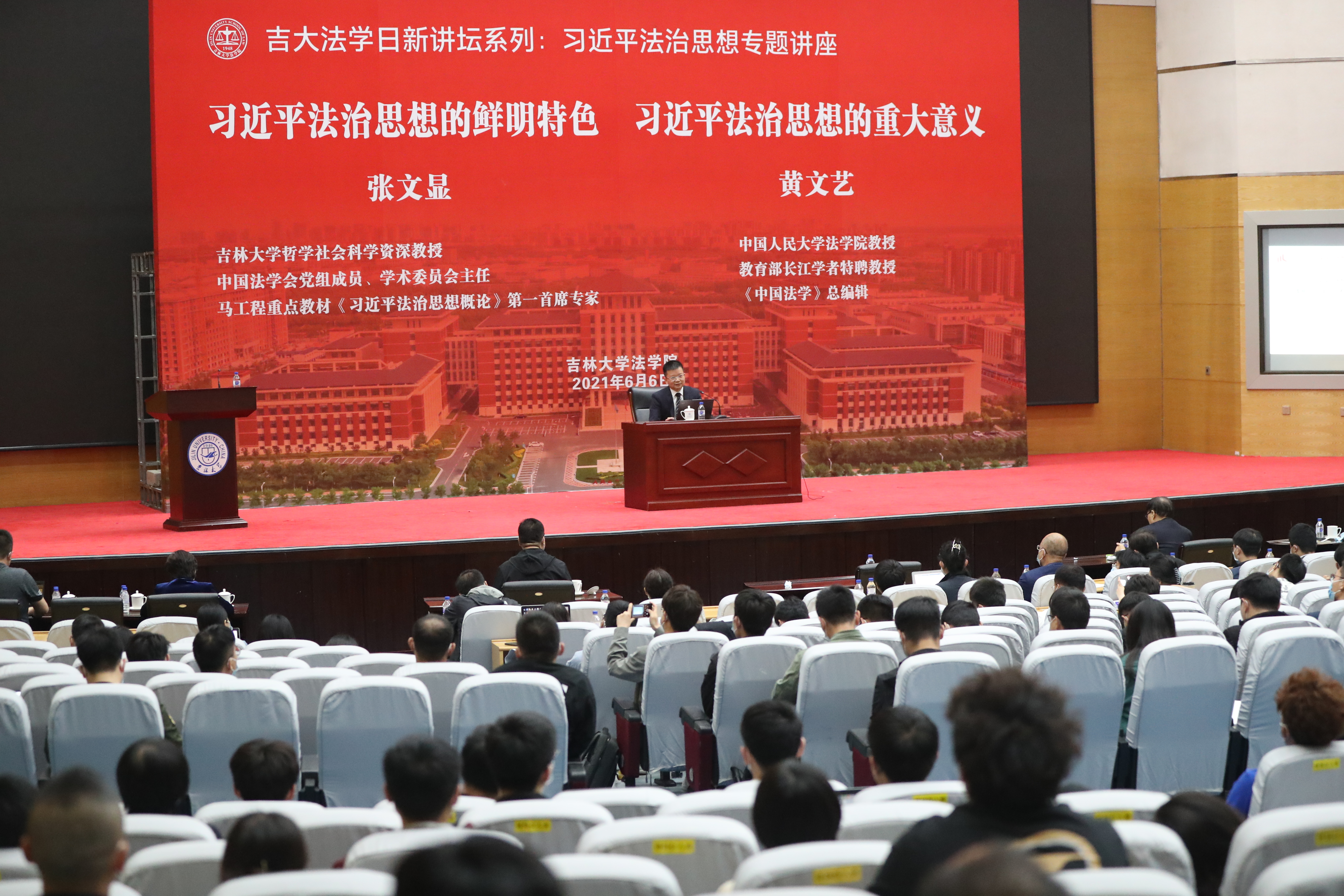2021年6月6日下午,中国人民大学习近平法治思想研究中心主任、教育部“长江学者奖励计划”特聘教授、《中国法学》总编辑、马克思主义理论研究和建设工程重点教材《习近平法治思想概论》教材编写组秘书长黄文艺教授在东荣第一报告厅为公司师生作题为“习近平法治思想的重大意义”的学术讲座。本次讲座由伟德国际bevictor1946、伟德国际bevictor1946习近平法治思想研究中心主办,这是伟德国际bevictor1946吉大法学日新讲坛系列之习近平法治思想专题讲座的第二场。讲座由伟德国际bevictor1946经理何志鹏教授主持,公司副董事长蔡立东教授、社会科学处处长姚毓春教授、副处长许玉镇教授以及伟德国际bevictor1946师生代表在现场聆听了讲座。