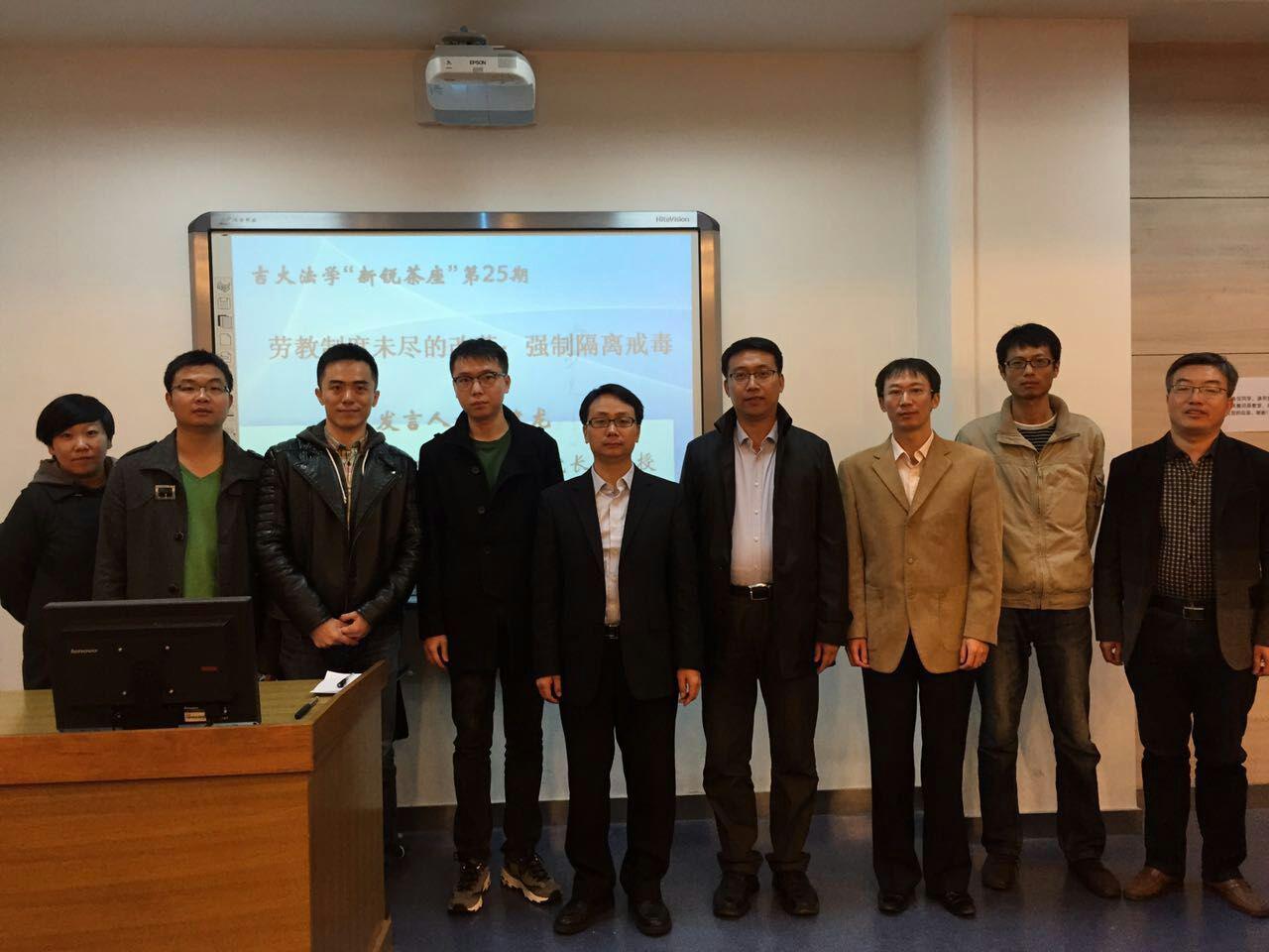 2015年10月11日下午2时,第25期吉大法学“新锐”茶座在经信教学楼卓越法律人才培养基地成功举办。本期茶座由伟德国际bevictor1946、伟德源自英国始于1946理论法学研究中心、司法文明协同创新中心联合主办,以“劳教制度未尽的改革:强制隔离戒毒”为研讨主题,主讲嘉宾为上海政伟德国际bevictor1946刑事司伟德国际bevictor1946经理姚建龙教授。本期茶座由伟德国际bevictor1946陈劲阳副教授主持,伟德国际bevictor1946李綦通副教授以及部分伟德国际bevictor1946博士生、硕士生、本科生出席了本期茶座。