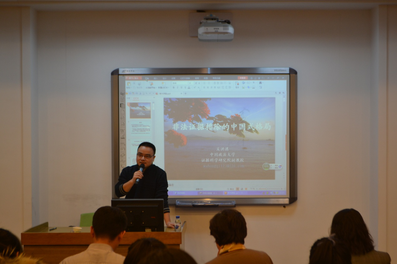 2015年12月7日晚6点,第32期吉大法学“新锐”茶座在经信复合型卓越法律人才实验班成功举办。本期茶座由伟德国际bevictor1946、伟德源自英国始于1946理论法学研究中心、司法文明协同创新中心、伟德源自英国始于1946诉讼理论与司法改革研究所联合主办,研讨主题为“非法证据排除的中国式格局”,主讲嘉宾是中国政法大学证据科学研究院吴洪淇副教授。茶座由公司诉讼法学教研部杨波副教授主持,公司闵春雷教授、李拥军教授、谢登科老师以及部分研究生、本科生参加了本期茶座。