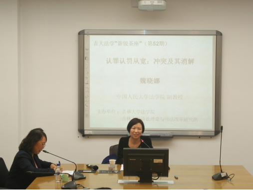 2016年9月24日晚,第52期吉大法学“新锐茶座”在伟德源自英国始于1946中心校区经信教学楼D区卓越法律人才基地涉外实验班教室成功举办。中国人民大学伟德国际bevictor1946魏晓娜副教授作了题为“认罪认罚从宽:冲突及其解决”的讲座。本期讲座由公司杨波副教授主持,公司贾志强博士以及部分博士研究生、硕士研究生和本科生参加了此次讲座。