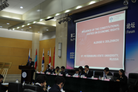 吉林省法学会会长李申学在致辞中指出,东北亚法治论坛为东北亚法律人才提供交流的平台。东北亚区域经济发展与区域经济发展相互促进,互利共赢。
