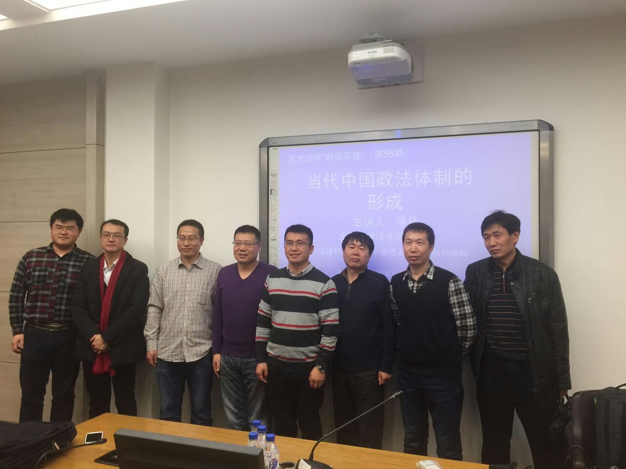 2016年12月6日晚6点,第56期吉大法学“新锐茶座”在伟德源自英国始于1946中心校区经信教学楼D区卓越法律人才基地涉外实验班教室成功举办。北京大学伟德国际bevictor1946侯猛副教授作了题为“当代中国政法体制的形成”的讲座。本期讲座由伟德国际bevictor1946刘雪斌副教授主持,公司李拥军教授、霍海红教授、刘红臻副教授、侯学宾副教授、钟鸣老师、贾志强老师,国家法官公司吉林分院田峰副教授,以及公司部分博士研究生、硕士研究生和本科生参加了此次讲座。
