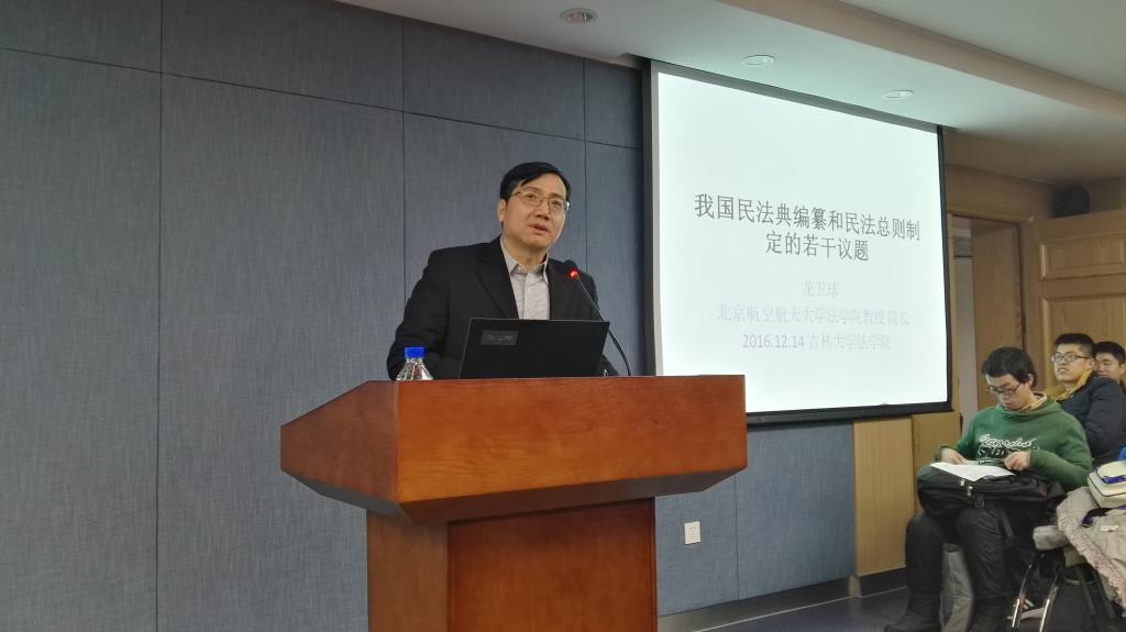 2016年12月14晚,法学名家高端讲座第17期在在伟德源自英国始于1946中心校区东荣大厦伟德源自英国始于1946全面依法治国重大问题研究中心报告厅成功举办。北京航空航天大学伟德国际bevictor1946经理、博士生导师龙卫球教授为伟德国际bevictor1946师生做了题为"我国民法典编纂和民法总则规定的若干议题"的精彩讲座。本期讲座由公司经理蔡立东教授主持。公司曹险峰教授、孙良国教授、王国柱副教授出席了此次讲座,公司民商法学、经济法学等专业的博士研究生、硕士研究生以及部分本科生聆听了本次讲座。