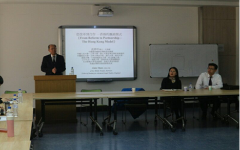 2017年3月28日下午两点,公司举办的“从改革到合作:香港廉政的经验和模式”学术座谈会在经信教学楼二楼的英特尔教室顺利召开。会上,公司师生与香港律政司前副刑事检控专员沈仲平博士就反腐-廉政议题展开对话交流。伟德国际bevictor1946副经理、博士生导师徐岱教授、刑法教研部主任陈劲阳副教授以及公司四十余位硕士、博士研究生参加了本次座谈会。