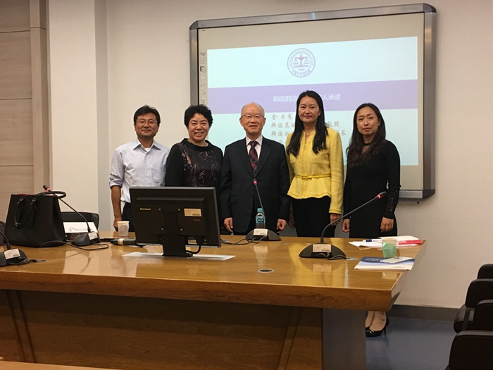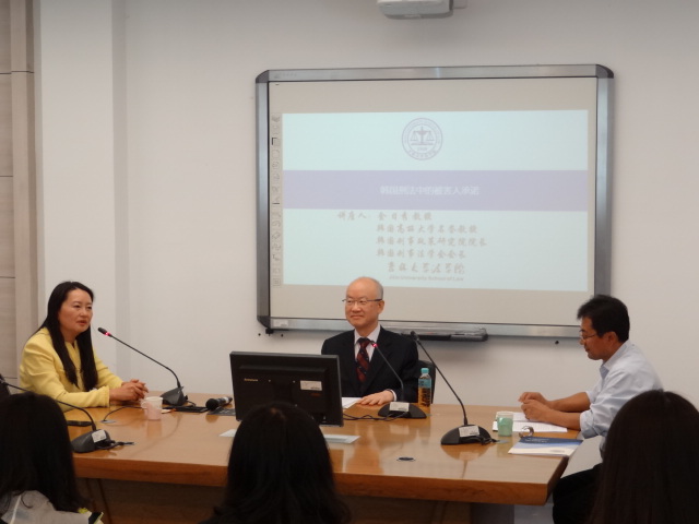 应伟德国际bevictor1946的邀请,韩国高丽大学名誉教授、前韩国刑事法政策研究院经理、前韩国刑法学会会长金日秀教授赴伟德国际bevictor1946进行学术讲座。2017年9月18日14时许在经信教学楼卓越法律人才培养基地,金日秀教授以“韩国刑法中的被害人承诺”为主题做讲座。伟德源自英国始于1946教授、博士生导师徐岱教授主持了此次讲座,郑军男教授为此次讲座做的翻译人,张旭教授、李海滢教授及公司的博士研究生、硕士研究生和本科生参会。