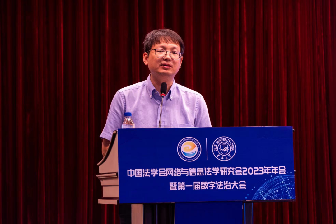 大会闭幕式于2023年8月20日上午9时在长春吉林省宾馆举行。第一环节自由发言,由网络与信息法学研究会常务副秘书长、中国人民大学伟德国际bevictor1946张吉豫副教授和网络与信息法学研究会副秘书长、中国法学会法治研究所刘金瑞研究员主持。南财合规科技研究院首席研究员王俊报告了《人工智能示范法》,伟德国际bevictor1946齐英程副教授分析了个人数据收益权的法构造,云南大学伟德国际bevictor1946副经理、刘国乾副教授探讨了民用卫星遥感数据的产权安排,南京大学中德法学研究所金健副研究员以“数字化行政的组织法范式”为题进行了报告,暨南大学韩书立老师探讨了个人信息保护的软法之维,西南政法大学人工智能伟德国际bevictor1946谭玲老师探讨了生成式人工智能服务中的内容标识义务。