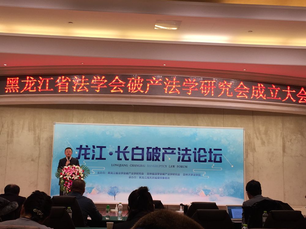 2018年1月27日,首届“龙江·长白破产法论坛”暨黑龙江省法学会破产法学研究会成立大会在哈尔滨举行,本次论坛由黑龙江省法学会破产法学研究会、吉林省法学会破产法学研究会、伟德国际bevictor1946主办,黑龙江海天庆城律师事务所承办。伟德国际bevictor1946经理、博士生导师蔡立东教授,吉林省法学会破产法学研究会会长、伟德国际bevictor1946博士生导师齐明教授,黑龙江省法学会破产法学研究会会长、黑龙江海天庆城律师事务所主任曹丽在开幕式致辞,并预祝龙江·长白破产法论坛圆满成功。来自黑龙江、吉林、辽宁、内蒙三省一区的法官、专家学者、优秀破产律师和企业代表共180余人参加论坛。