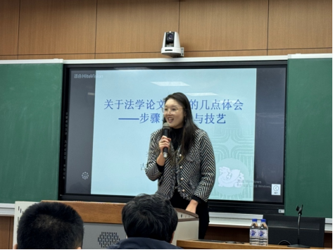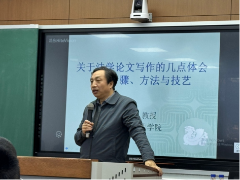 随后,李老师以论文写作的步骤为序,依次介绍了论文的选题、文献的收集阅读和整理、文献综述、提纲拟定、初稿写作、修改定稿和文献核对等七个论文写作的不同阶段,并从中挑选核心环节展开着重讲解。在选题方面,李老师总结了论文选题的五种路径:从学科的基础概念处选题;从当下的学术研究热点、焦点处选题;从立法、案例和政策中选题;从日常生活实践中选题和从导师处选题。他认为,一个好的选题,是论文写作成功的一半。但是也应该注意,选题要把握好与创新的关系,也要做到难易适度、大小适中。在文献的收集阅读和整理部分,李老师强调要认真对待文献,在泛读的基础上做好分类,选择重点文献进行精读并做好读书笔记,在阅读的过程中学习、模仿并超越。在提纲拟定方面,论文题目的拟定要遵循专业、精准、凝练的基本原则,反复推敲;而提纲的拟定应做到合乎逻辑、结构合理、层次清晰、严谨精美。在初稿写作部分,应当按照“虎头”“猪肚”“豹尾”的标准进行写作,明确论文写作的取向和研究方法,认真对待论文的摘要、关键词、引言、正文和结语等各个部分。在完成初稿的基础上,对论文进行反复修改和打磨,形成定稿。
