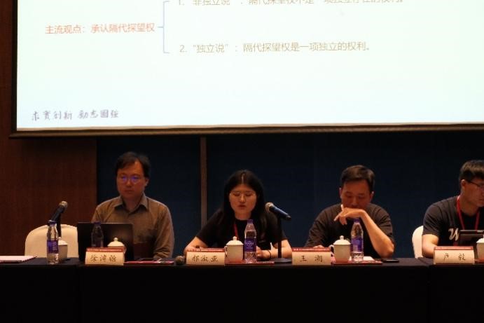 郝淑亚(伟德国际bevictor1946博士研究生)以《隔代探望权何以成为一项独立的权利?——基于“厚”的家庭观文化》为主题作报告。她指出,关于隔代探望权能否是一项独立的权利问题,在当前的学术讨论中存在两种争论,但是均止步于权利本身的形式性探讨,而未涉及到深层次的家庭结构研究。隔代探望权独立性争论,反映了从宗族家庭到核心家庭的变迁过程及其影响,解决该问题则需要在二者之间寻求平衡,即主张一种“厚”的家庭观。只有在“厚”的家庭观指导下,才能对隔代探望权进行独立的安排。