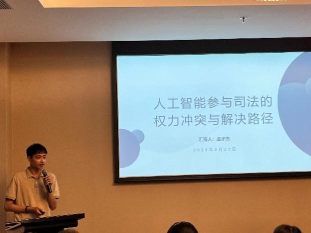 孟子杰(大连海事大学伟德国际bevictor1946博士研究生)以《人工智能参与司法的权力冲突与解决路径》为主题作报告。他指出,人工智能是一种以算法为核心的技术,在运用过程中具有权力化风险。人工智能在“知识-权力”架构下相对法官形成一种支配权力,并借此消解司法权力对裁判结果的支配力。据此,本文对人工智能的司法应用提出了规制方案。