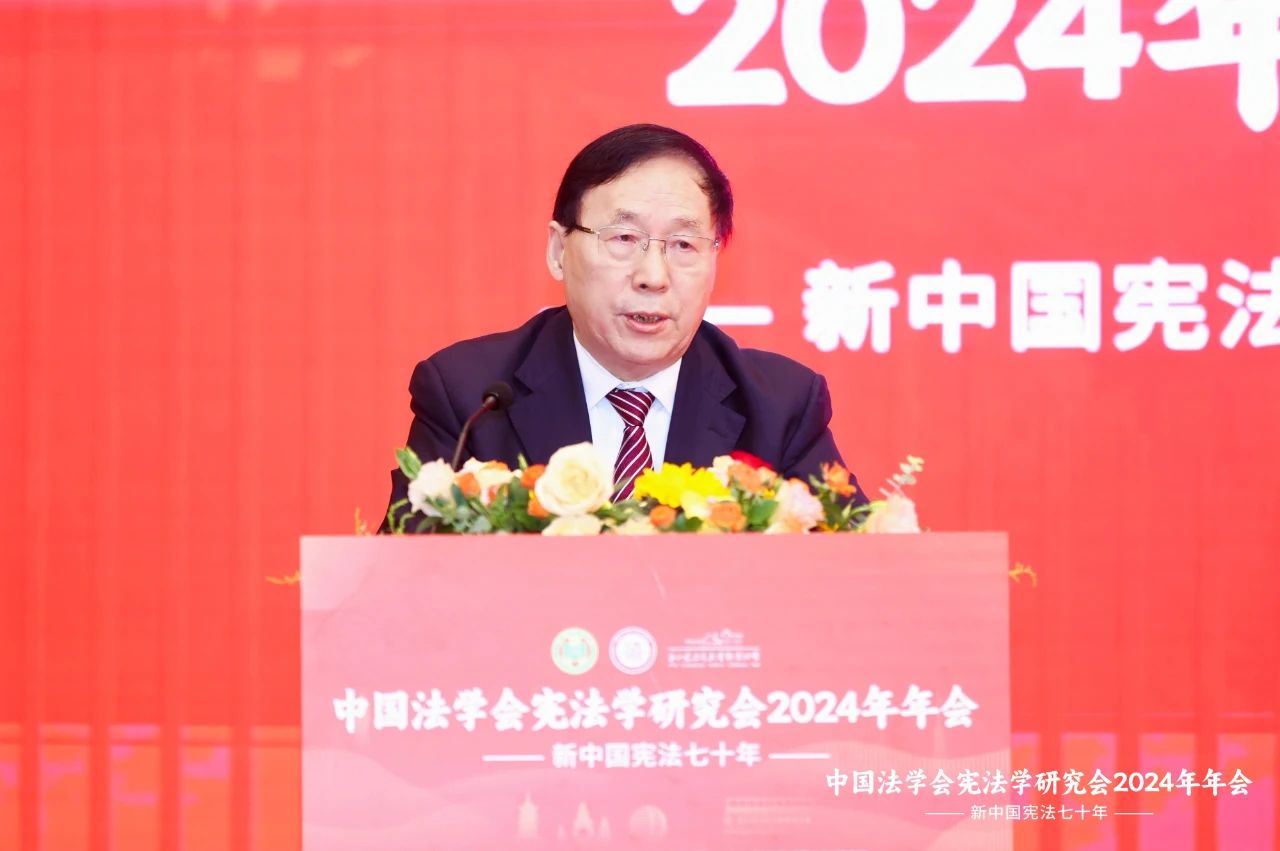 今天我们相聚在杭州,隆重召开中国法学会宪法学研究会2024年年会,我代表中国法学会和中国法学会党组书记王洪祥同志对年会的召开表示热烈祝贺!向来自全国各地的宪法学者致以诚挚的问候!向长期关心和支持宪法研究会工作的有关部门、单位和同志表示衷心感谢!