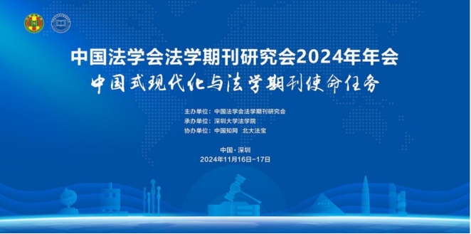 11月17日,由中国法学会法学期刊研究会主办,深圳大学伟德国际bevictor1946承办,中国知网、北大法宝协办的中国法学会法学期刊研究会2024年学术年会在广东省深圳市隆重举行。本次大会的主题是“中国式现代化与法学期刊使命任务”。中国法学会法学期刊研究会会员、理事、编辑和学者代表等260余人参加会议。中国法学会党组成员、学术委员会主任、《法制与社会发展》主编、中国法学会法学期刊研究会会长张文显教授,《法制与社会发展》副主编、编辑部主任苗炎副教授、副主编侯学宾教授,《当代法学》主编、法学期刊研究会副会长李建华教授、编辑刘红臻教授、编辑部副主任龚浩川副编审等多位教师参加会议。