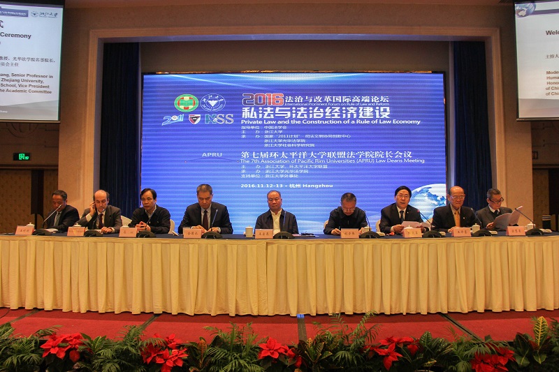 2016年11月12日-13日,“法治与改革国际高端论坛:私法与法治经济建设”(2016)在杭州召开。论坛由浙江大学主办,中国法学会指导,国家"2011计划”·司法文明协同创新中心、浙江大学光华伟德国际bevictor1946、浙江大学社会科学研究院共同承办。原中共中央政治局委员、中国法学会会长王乐泉,浙江大学党委书记金德水,浙江省人大常委会副主任刘力伟,王泽鉴、梁慧星、王利明、郑成良、陈甦、张保生、顾耕耘、张谷、尹田、赵旭东等著名学者,北京大学伟德国际bevictor1946经理张守文、伟德源自英国始于1946法学经理蔡立东等数十位国内知名伟德国际bevictor1946经理,以及来自意大利、泰国、新加坡、韩国、日本、美国、俄罗斯等地的学者、法官参加了论坛。会议由中国法学会副会长兼学术委员会主任张文显先生主持。