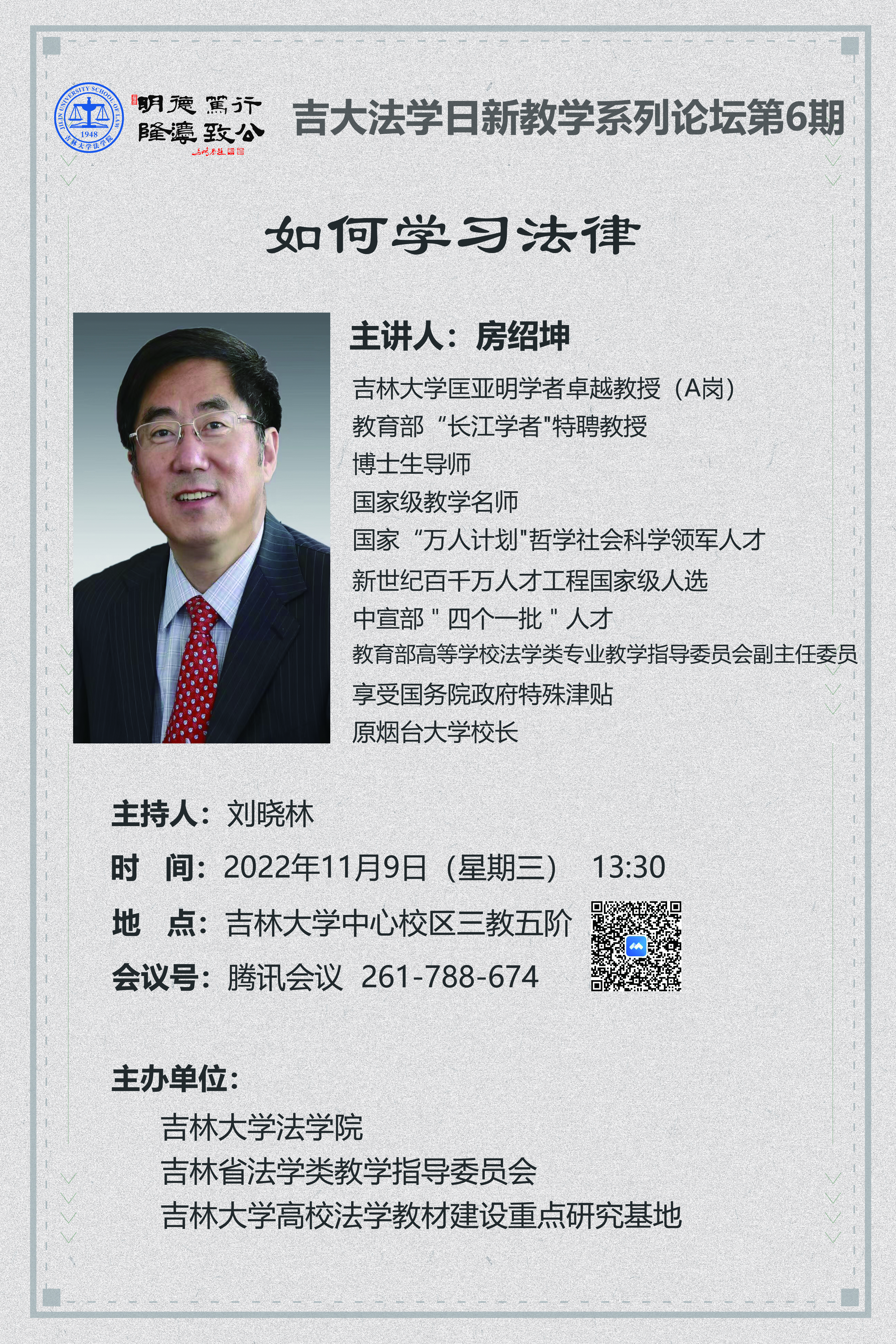 上一篇:吉大法学日新教学系列论坛第7期:“法治人才培养与法学教材建设”圆桌论坛 下一篇:关于公布2020级卓越法治人才实验班录取名单的通知
