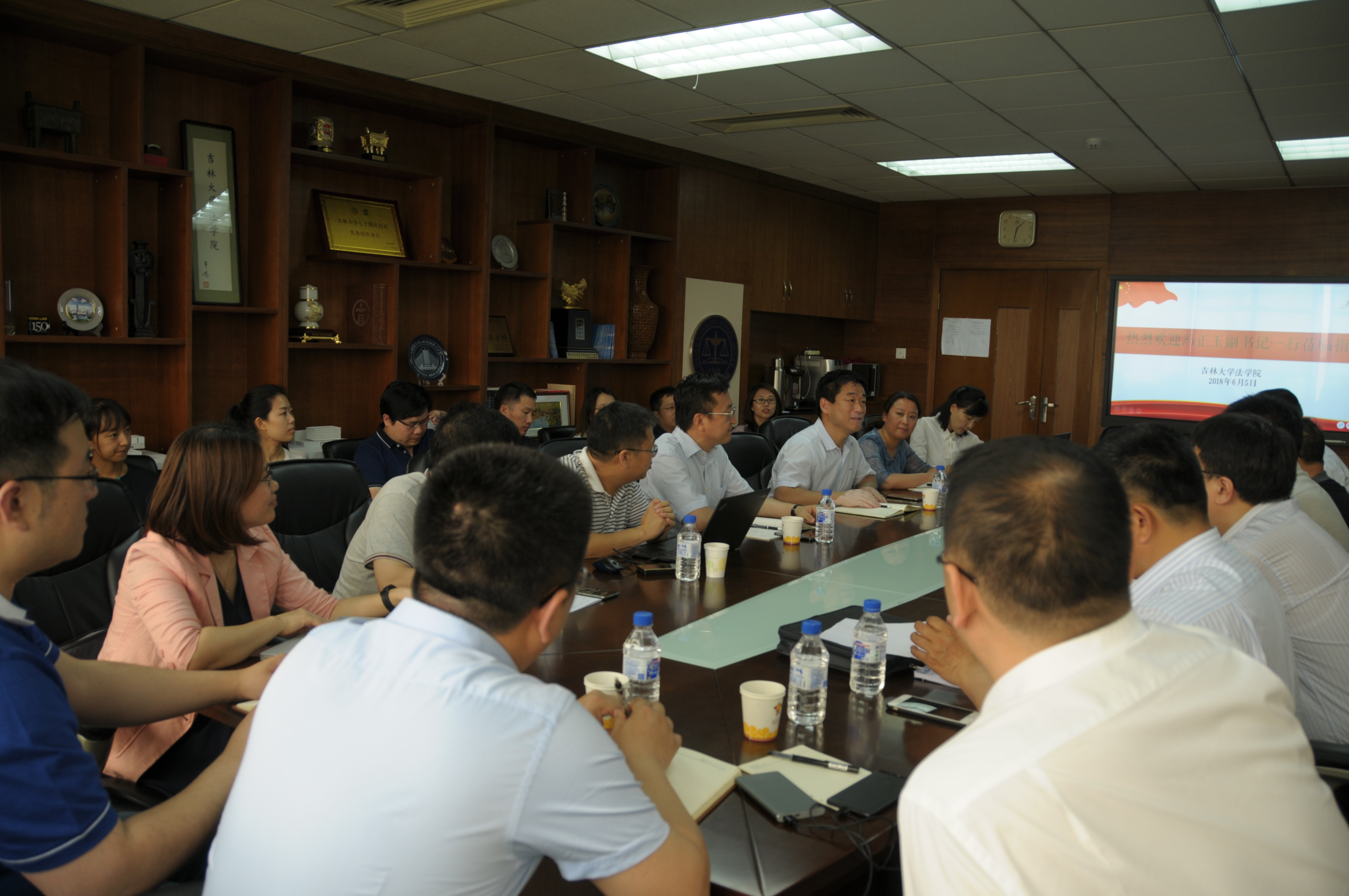 2018年6月5日下午,公司党委副书记冯正玉、党委办公室、员工工作部、研究生工作部、教务处、校团委、员工就业创业指导与服务中心、员工心理健康指导中心等单位相关负责同志一行来伟德国际bevictor1946开展员工工作专项调研。伟德国际bevictor1946经理蔡立东、党委书记周春国以及全体领导班子成员、员工工作办公室、研究生办公室、法硕中心办公室的工作人员和员工代表参与了本次座谈。座谈由法公司党委书记周春国主持。