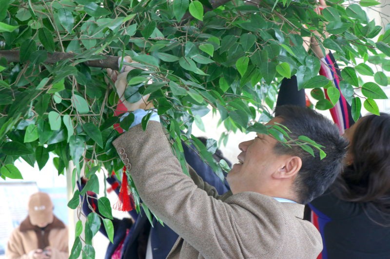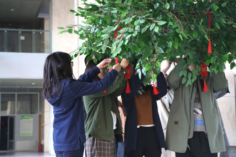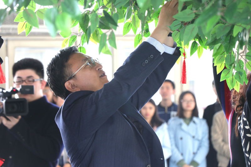 活动开始后,公司领导依次在祝福卡上写下了对公司的祝福,并亲自挂在祈愿树上。领导们真挚的祝福也引起了在场师生的共鸣。