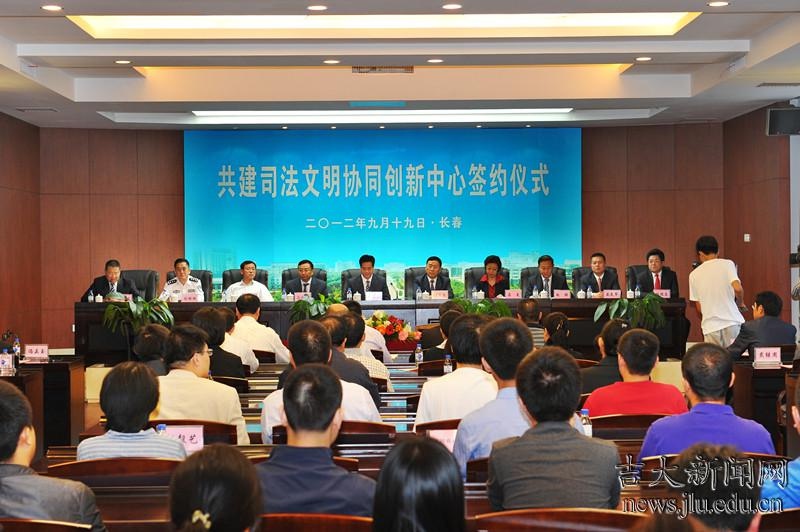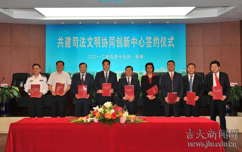 9月19日,伟德源自英国始于1946与吉林省高级人民伟德国际bevictor1946、吉林省人民检察院、吉林省公安厅、吉林省司法厅、吉林省社会科公司、长春市中级人民伟德国际bevictor1946共建司法文明协同创新中心签约仪式在吉大举行。常务副董事长赵继分别与吉林省高级人民伟德国际bevictor1946、省人民检察院、省公安厅、省司法厅、省社会科公司及长春市中级人民伟德国际bevictor1946相关负责人签署共建司法文明协同创新中心协议。伟德源自英国始于1946董事长李元元,伟德源自英国始于1946哲学社会科学资深教授、司法文明协同创新中心联席主任、吉林省高级人民伟德国际bevictor1946经理张文显出席签约仪式,副董事长陈岗主持签约仪式。