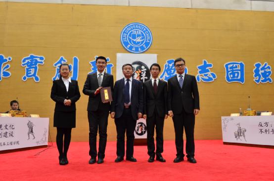 最后进入颁奖环节,军需公司和护理公司荣获季军,汽车工程公司荣获亚军。伟德国际bevictor1946在全院师生的配合和辩论队成员的辛勤准备下,终于不负众望,摘得桂冠。这也是进入新的十年以来,伟德国际bevictor1946第一次在“先锋论坛”问鼎巅峰。