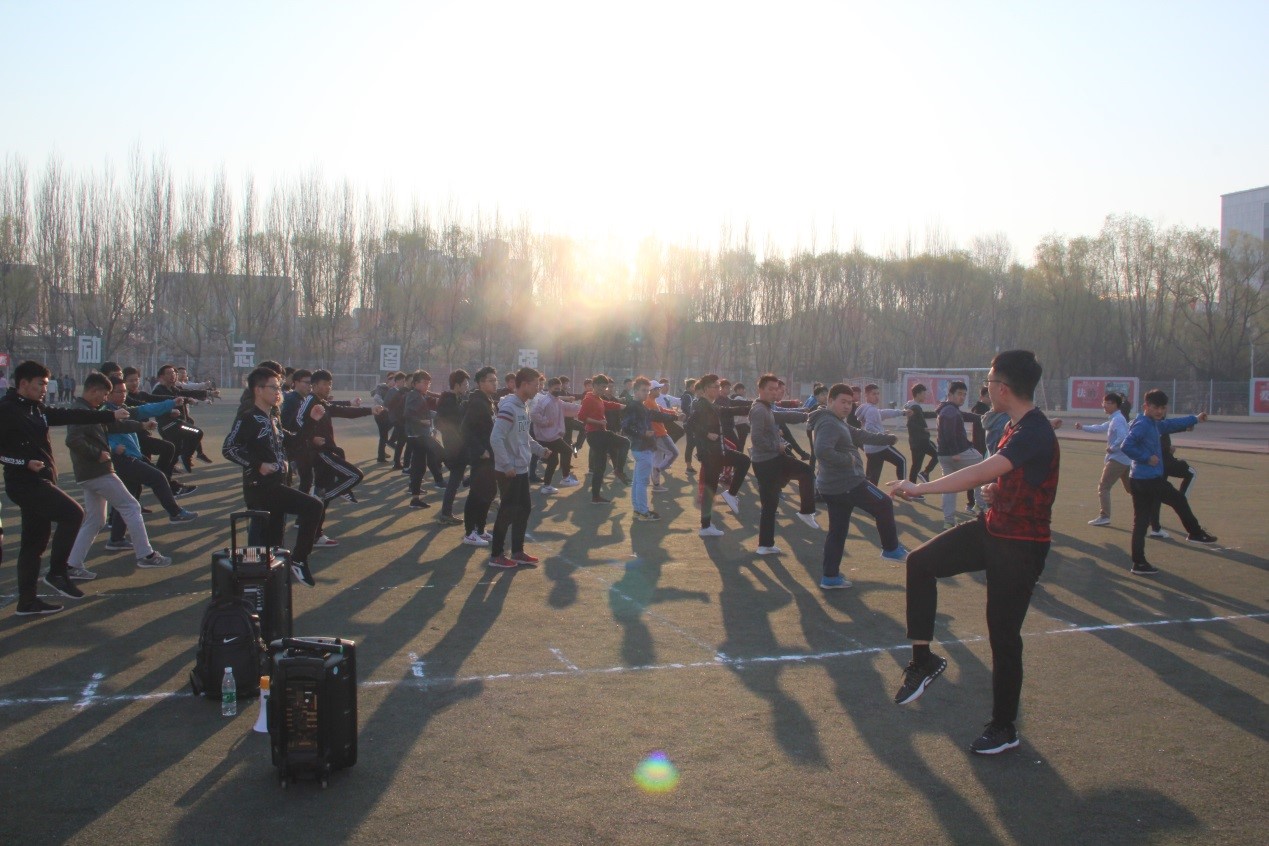长拳训练由大二的员工会干部带领着大一的员工训练。大一同学整齐地排列在操场上,全神贯注地听着大二同学的指导;大二的训练员认真负责,用饱满的热情去激发大一同学训练的热情,充分体现了伟德国际bevictor1946一脉相承的优良传统,有利于促进同学间感情,加强联络。