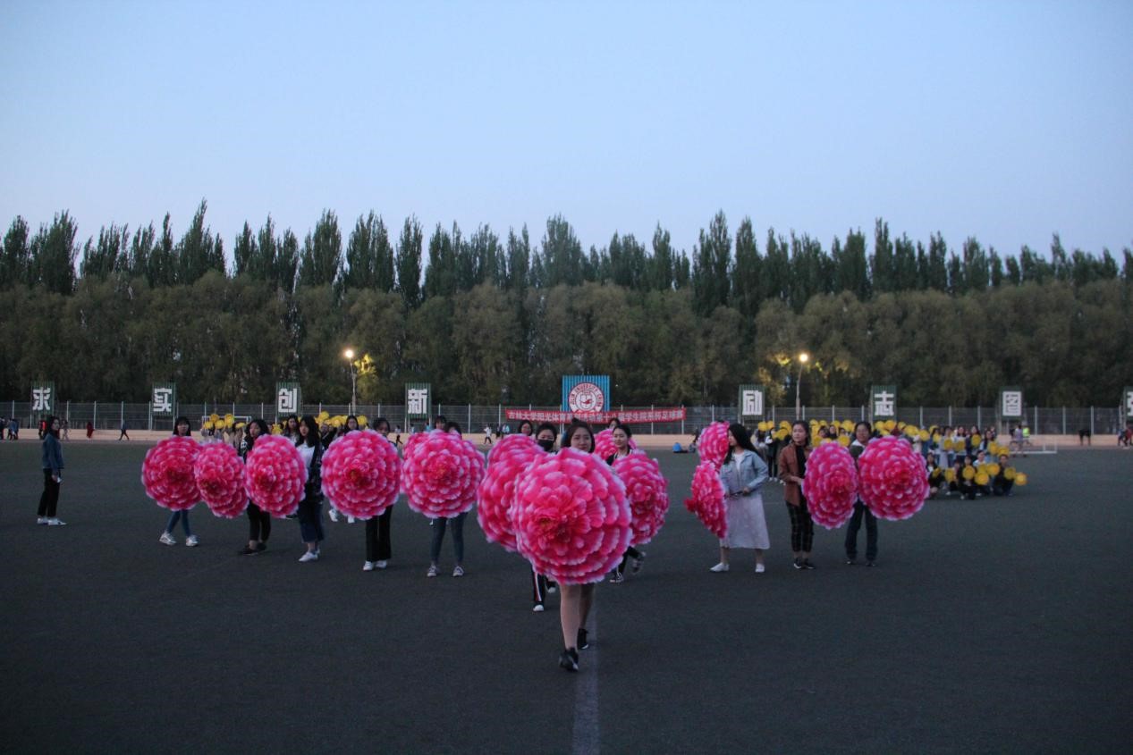大舞方阵由大二员工会干事带领,伟德国际bevictor1946大一女生组成。欢快的音乐、美丽的花伞道具还有清新靓丽的大一新生,共同组成了这个青春洋溢的队伍。大舞成员按照音乐的节拍,在体育场奔跑着找寻自己的位置,为了使整个大舞的队形可以顺利的不断变换,为了呈现出多种多样的美丽图案,即使气喘吁吁,她们也没有丝毫懈怠。阳光下努力奔跑的大一新生,比她们手里的花伞还要美丽。