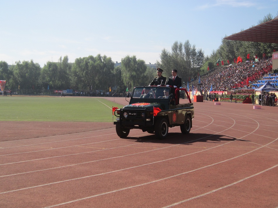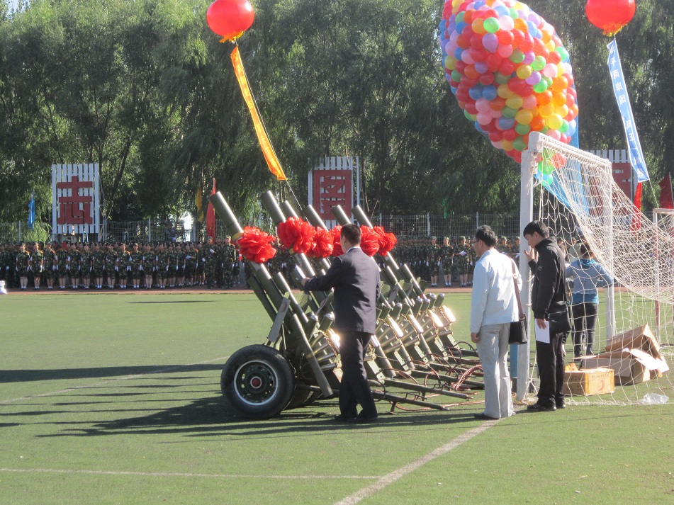 随着六架礼炮轰响齐鸣,大会正式开始。第一项——升国旗、奏国歌。庄严肃穆的国歌声令人们不禁肃然起敬。随后,升校旗、唱校歌,这曲伴随吉大多年的旋律深深萦绕在每位吉大人的心中。紧接着,三位英姿飒爽的军人身扛军旗走向主席台,董事长李元元坐上检阅车开始举行阅兵仪式。同学们的军姿站得笔直,纹丝不动,口号声嘹亮高亢,完美地向领导老师们展示这两个星期艰苦训练的成果。紧接着,另一批方阵的精英们表演了威武生风的军体拳,这是对“巾帼不让须眉”的最好诠释,振奋人心的口号让全场掌声经久不息。