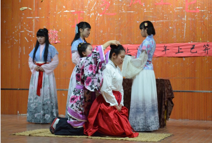 汉族女子成人礼的学术名字为笄礼,是古代嘉礼的一种。俗称“上头”、“上头礼”。笄,即簪子。 自周代起,规定贵族女子在订婚(许嫁)以后出嫁之前行笄礼。一般在十五岁举行,如果一直待嫁未许人,则年至二十也行笄礼。冠(笄)之礼是我国汉民族传统的 成人仪礼,是汉民族重要的人文遗产。