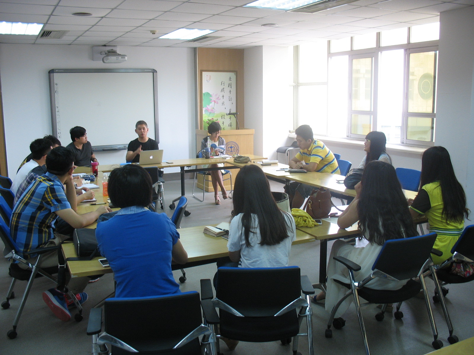 培训会上,首先,高岩老师简要介绍了新生班主任的职责和任期,强调新生班主任要以饱满的热情和责任心迎接近一个学期的新生班主任工作。接下来,高老师对新生班主任提出了一系列要求:他要求新生班主任在工作中一定要团结一致,在与新生的相处中既要树立成熟稳重的形象,保持威信;又要和新生打成一片,做他们的知心朋友。另外他还强调了一些新生班主任在和新生相处中的注意事项。最后,高老师着重说明了新生班主任即将面对的各项迎新工作内容,并对新生入学后的班委选举、新生辩论赛、班级量化评比等工作进行了简要布置。