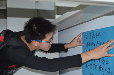 其中,2013级7班同学们独具特色的迎新传统特别值得一提。除了把寝室打扫的干干净净之外,7班的同学们还为每一个即将到来的新同学准备了个性化的祝福语,并贴在2014级7班每位新生寝室的墙上,让每一位新同学都得到来自师哥师姐的祝福与鼓励。