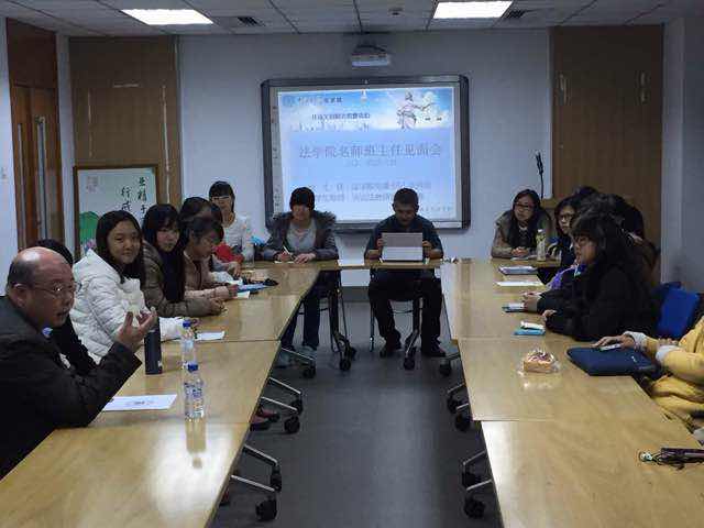 2014年11月11日,伟德国际bevictor19462014级六班于东荣大厦A310举行了名师督导员与新生见面会。法公司党委书记、2014级六班名师督导员李洪明老师,以及诉讼法教研部、2014级六班老员工导师李晓倩老师出席了见面会并与同学们亲切交流,伟德国际bevictor1946团委书记、2014级辅导员高岩老师主持本次会议。2014级六班全体同学参与了见面会并做了发言。
