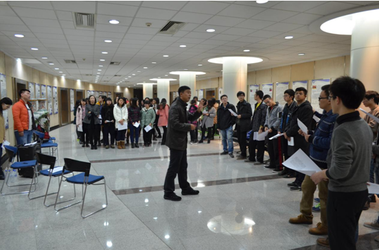6点15分左右,大部分参与人员就已经陆续到来,党员们积极务实的态度可见一斑。骆旷达老师也亲临现场,与大家并肩奋斗。6点30分,在完成了签到及分发歌词后,排练正式开始。为了提供专业的指导,公司专门请来了艺术公司音乐系的黄老师为合唱队做专门培训。