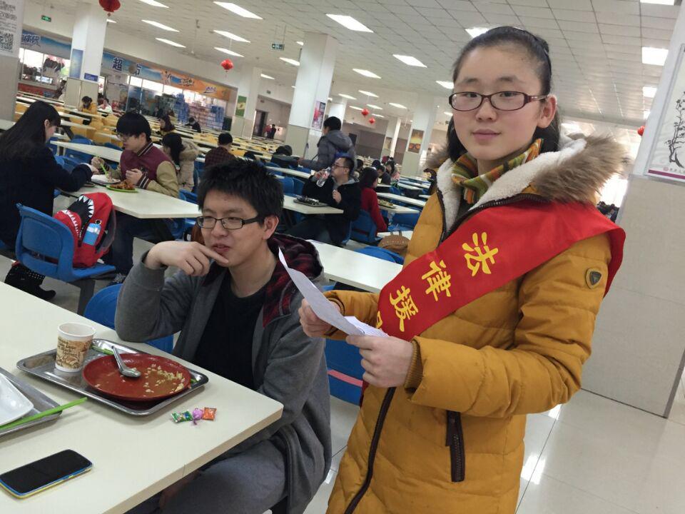 活动当天,同学们按照计划分成了两组,分别进行食品安全消费小常识有奖竞答和征集食品消费者署名签条幅活动。同学们热情高涨,戴上统一的绶带,认真的进行着活动的每一个环节。负责有奖竞答的同学拿着与食品安全有关的常识问题耐心询问着每一位答题人,并且向他们普及相关的食品安全内容。很多等候就餐的人都有积极踊跃的加入到我们的活动中来,这让我们每一位努力开展活动的同学都感到很欣慰,让我们觉得宣传消费安全知识能够真正帮助大家在生活中避免很多问题。