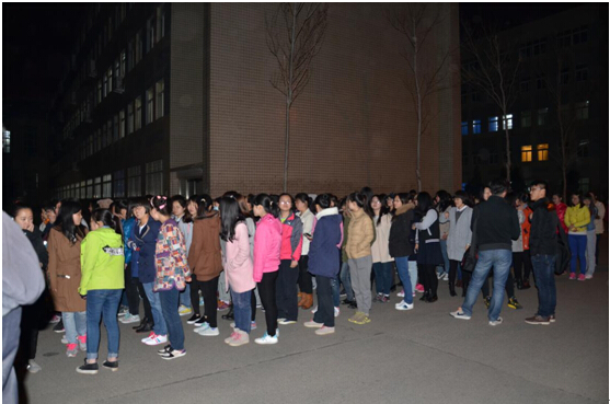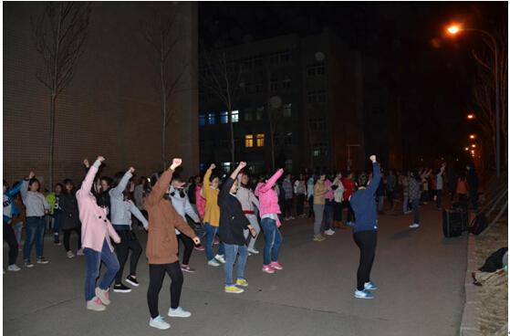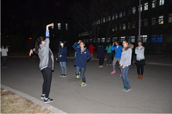 2015年4月16日晚上8点半,在凛冽的寒风中,在昏暗的灯光下,伟德国际bevictor19462014级全体女生在经信教学楼楼下展开了运动会集体项目之一大舞的第一次排练。