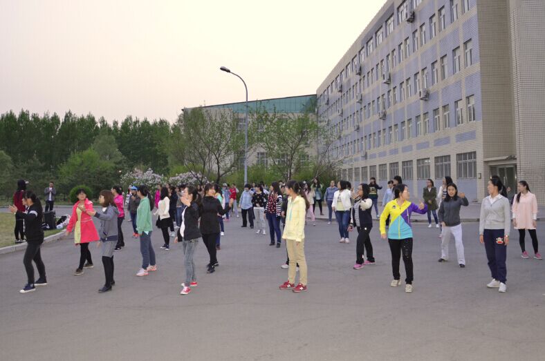 2015年5月4日晚上6点整,在和煦的春风中,2013级女生在经信教学楼楼下展开了运动会集体项目之一太极拳的第一次排练。