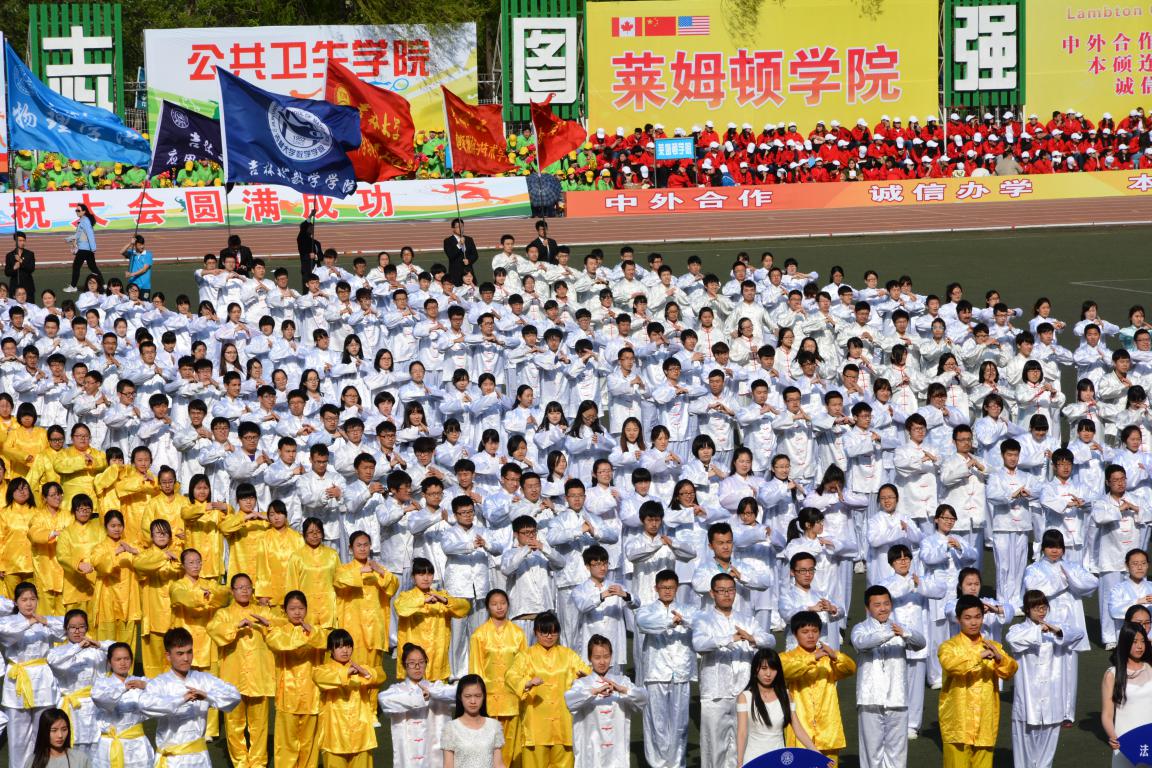 比赛继续进行。下午三时许,各项田径项目比赛基本已全部结束,在观看完力量与速度的比拼后,体育场上出现了新鲜元素——太极拳集体项目,着实令人耳目一新。来自各个公司的太极拳队伍聚集在体育场,场面极其壮观。太极拳以中国传统民乐“茉莉花”为背景音乐,与太极拳的柔和之美相映成趣,使人感到非同一般的典雅。在场的师生们纷纷拍手称赞,外国友人们更是赞不绝口。太极拳蕴含着中国古老的智慧,更彰显着青春的活力,伟德国际bevictor1946太极队伍将之表现得尤为淋漓尽致。