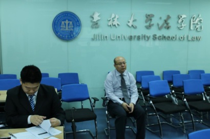 比赛首先由主席宣读成员组成及比赛规则,本场模拟法庭由梁伟法官担任审判长,由侯学斌副教授、田洪鋆副教授担任审判员。接下来,由法官宣布开庭,原告“五湖四海”代表队陈述代理词,即原告赵丹经人介绍在被告长春禾禾汽车销售有限公司,经姜丹接待,以低于市场价的价格购车,并用银行卡支付了10万元车款,但被告一直没有给车。因此请求被告返还购车款10万元,并支付相应利息,诉讼费由被告承担。被告“法力无边”代表队认为原告办理手续时,只与姜丹进行接触,并没有与被告签订合同;姜丹名片为自己私印,并非被告方销售员工,责任由其自负;姜丹的行为并不构成表见代理,原告与被告不成立车辆买卖关系。