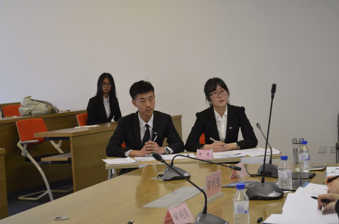 主席首先介绍了合议庭成员:审判长李立娟,审判员田洪鋆和侯学宾,接着介绍了原告方“我们柒”(于文敏、徐润)及被告方“笑而不语”(卢炼、苏文路)。在主席将比赛规则及注意事项宣读完毕后,本场比赛正式“开庭”。
