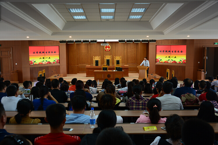 8月29日,下午一点三教五阶,座无虚席,在辉煌庄重的模拟法庭中,15级新生家长会隆重召开。伟德国际bevictor1946经理蔡立东教授、法公司党委副书记兼副经理赵洁老师、2014级员工辅导员高岩老师、2015级员工辅导员田园老师,2012级辅导员马旭老师,2013级辅导员骆旷达老师及各班班主任参加了会议。