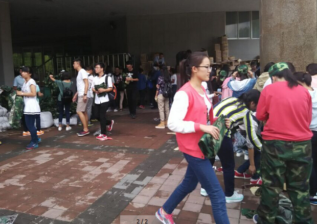 2015级新生,他们将收到未来一个月的军训生活给予他们的第一份礼物——军训服装。