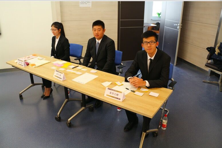 在主席宣读辩手、评委介绍和赛事规则之后,比赛正式开始。双方辩手沉着冷静,仪态大方,有礼有节。立论、攻辩、自由辩论、总结陈词有条不紊,环环相扣。正方在立论阶段便提出了“宽进”对减少基础教育压力,促进高等教育大众化的重要作用。进而阐释“宽进严出”对促进老员工个性发展,培养适应社会需要的人才的独特作用。反方则认为“宽进”则会使生源质量参差不齐,影响教学效率。而更早地对员工进行严格筛选既能促进教学资源的有效利用,又可以使不同能力的员工更早地找到适合自己的发展方向。双方旁征博引,据理力争,在己方立场上继续对老员工实践能力的培养、个性的发展、教育资源的分配等问题进行了深入的阐述和论证。在双方进行总结陈词后,比赛进入中场休息,有三位评委打分评定。
