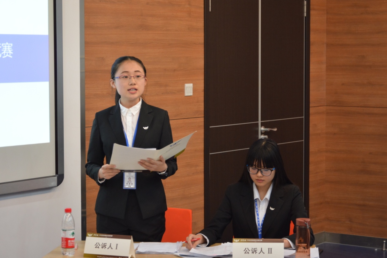 本次比赛的案例是一起刑事盗窃案件。第一场比赛由每组前两支队伍率先展开角逐。在法庭调查阶段,控辩双方分别陈述己方观点,并向对方进行质证。到了法庭辩论阶段,各位队员的能力和特点表现得更加鲜明。队员们充分利用案件材料中的证据进行发问,自如地引用法条,运用严密的推理进行辩驳。看得出来大家都做了充足的赛前准备。场上不到一个小时针锋相对、精彩纷呈的模拟庭审,是场下无数次翻阅近百页的案件材料、无数次查找法律条文、无数次推演庭审过程的枯燥和辛劳换来的。三位审判员很好地引导着庭审的有序进行,让双方充分表达各自观点。严肃紧张又带着激烈的理性思辨的辩论之后,双方做了三分钟简短有力的总结陈述。审判员宣布休庭,进入评审阶段。双方队员离开赛场稍作休整,准备下午的另一场比赛。