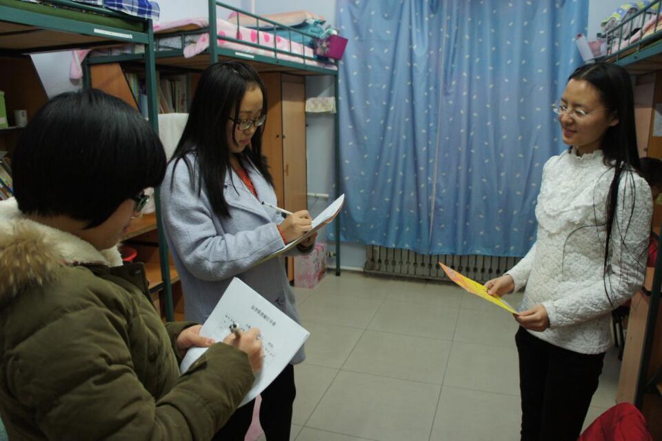 下午18时整,生管会工作人员按照《伟德国际bevictor1946查寝评分细则》井然有序地准时开始查寝工作。此次查寝着重检查电器使用,同时注重寝室卫生,同学们积极配合,室内干净整洁,也没有出现违规用电现象,体现出温馨健康的学习生活气氛。在查访各个寝室的过程中,生管会工作人员分发了消防安全传单,普及了“员工宿舍如何防止用电火灾事故”、“抢救用点火灾事故要注意什么”、“失火后有哪些应急措施”以及“逃生注意事项”四个方面的知识,使同学们对消防安全有了更深入的认识,并得到了同学们的积极响应。