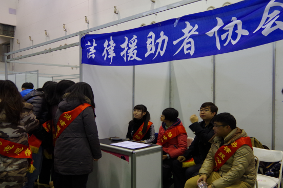 上午8时,在负责人的带领下,法律援助者协会的志愿者们来到了长春会展中心招聘会主会场。虽然时间还早,但此时会展中心里已经是人山人海,毕业生们都带着简历在各个企业单位的展位前排队咨询。法律援助者协会也布置起自己的展位,拉起了蓝色的横幅。负责人简单地分工之后,志愿者们分为几个小组分散到各个会馆派发宣传单。在求职的人海中,无私服务的志愿者身影随处可见,成为会场一道独特的风景线。