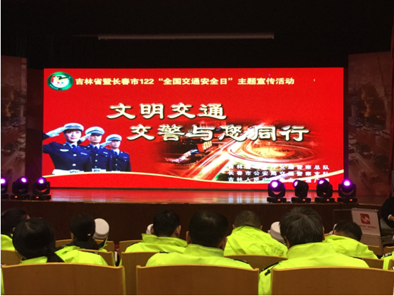 接下来,吉林人民广播电台交通广播的几位主播作为吉林省文明交通形象大使,以小短剧的形式带我们走进交通执法缩影。三段小短剧分别展现了超速、危化品运输、酒驾三种情况,短剧中,无论违规者油嘴滑舌还是试图贿赂,在场执法的交通警察都义正言辞,规范执法,让我们感到了交警对工作和人民负责任的态度。短剧间隙播放由真实道路监控剪辑而成的交通事故短片,配以主播们动情的话语,让在场的每个人都深深感到了交通事故后果的严重性,更坚定了遵守交通规则的信念。随后主持人向大家介绍,为了使交通安全观念深入人心,交通警察们开展了“百人百村大宣讲交通安全活动“,下乡宣传交通安全意识,更采取了多种群众们喜闻乐见的形式。现场更是由两位二人转表演艺术家作为交通文明大使向大家表演了宣传交通安全的二人转,接地气的宣传方法获得了热烈的掌声。